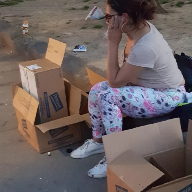 The woman with the Perdue boxes around her was cleaning up my area on her own…moving the empty boxes out of my way and just wanting to talk….